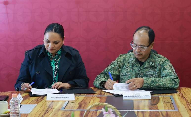 La funcionaria destacó que este es el primer acuerdo que suscribe el gobierno estatal con la Defensa atendiendo las indicaciones de la gobernadora Delfina Gómez Álvarez.