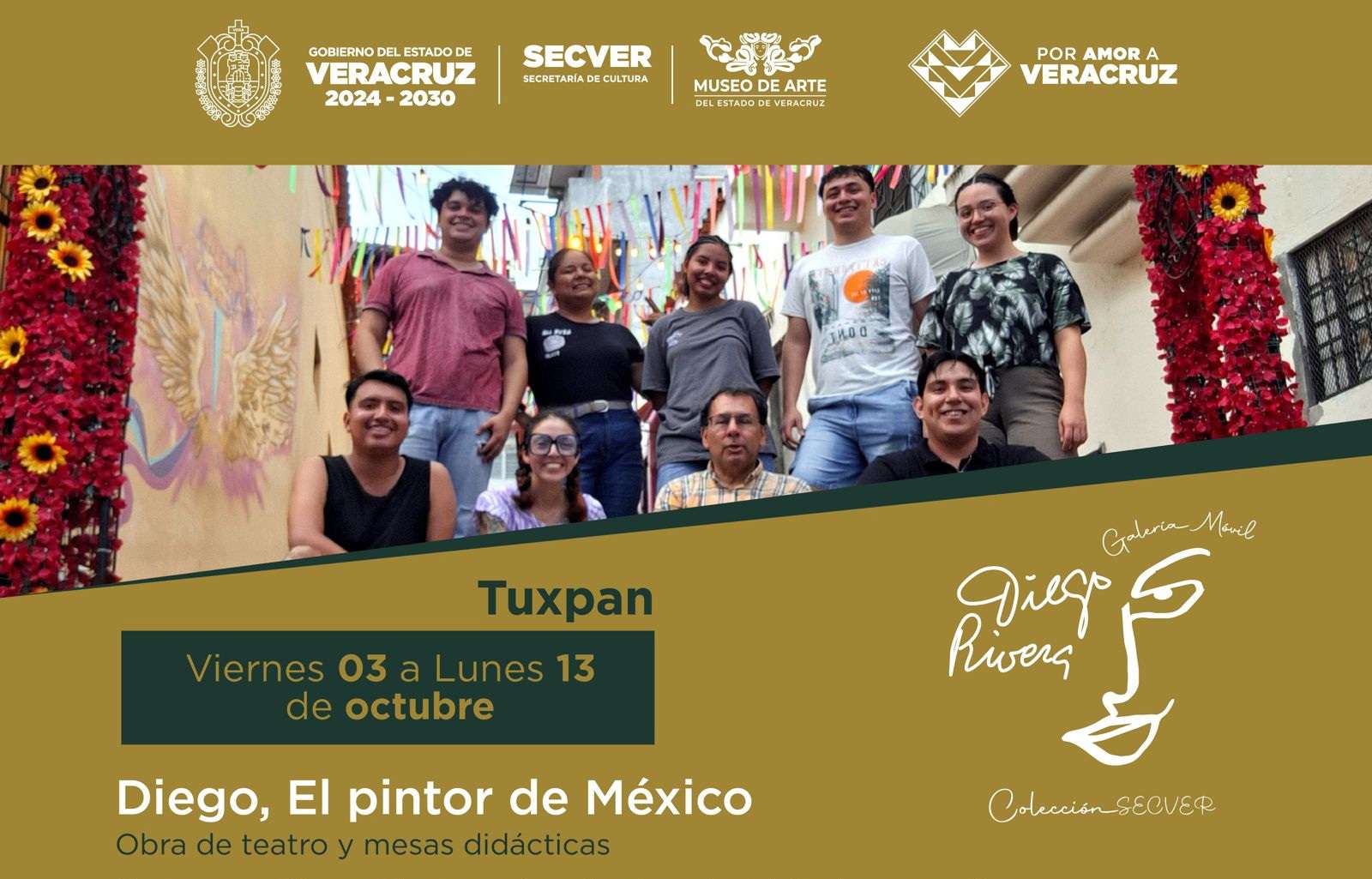La Secretaría de Cultura del Estado de Veracruz (SECVER), en colaboración con el H. Ayuntamiento de Tuxpan, traerá el viernes 03 de octubre la galería abierta Diego Rivera al Parque Reforma de Tuxpan.