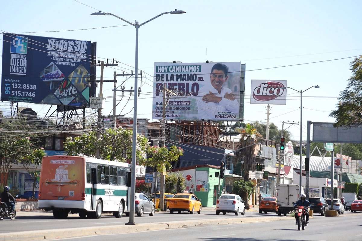 Pese a que desde el pasado 17 de enero la comisión de Quejas y Denuncias del Instituto Estatal Electoral y de Participación Ciudadana de Oaxaca (Ieepco) emitió una medida cautelar para el retiro inmediato de propaganda irregular concerniente a la votación de revocación de mandato a efectuarse el próximo 25 de enero en el estado de Oaxaca, en la que los habitantes podrán decidir si continúa en el mandato el gobernador, Salomón Jara; este lunes las calles de la ciudad de Oaxaca aún lucen las lonas irregulares en favor del morenista.
