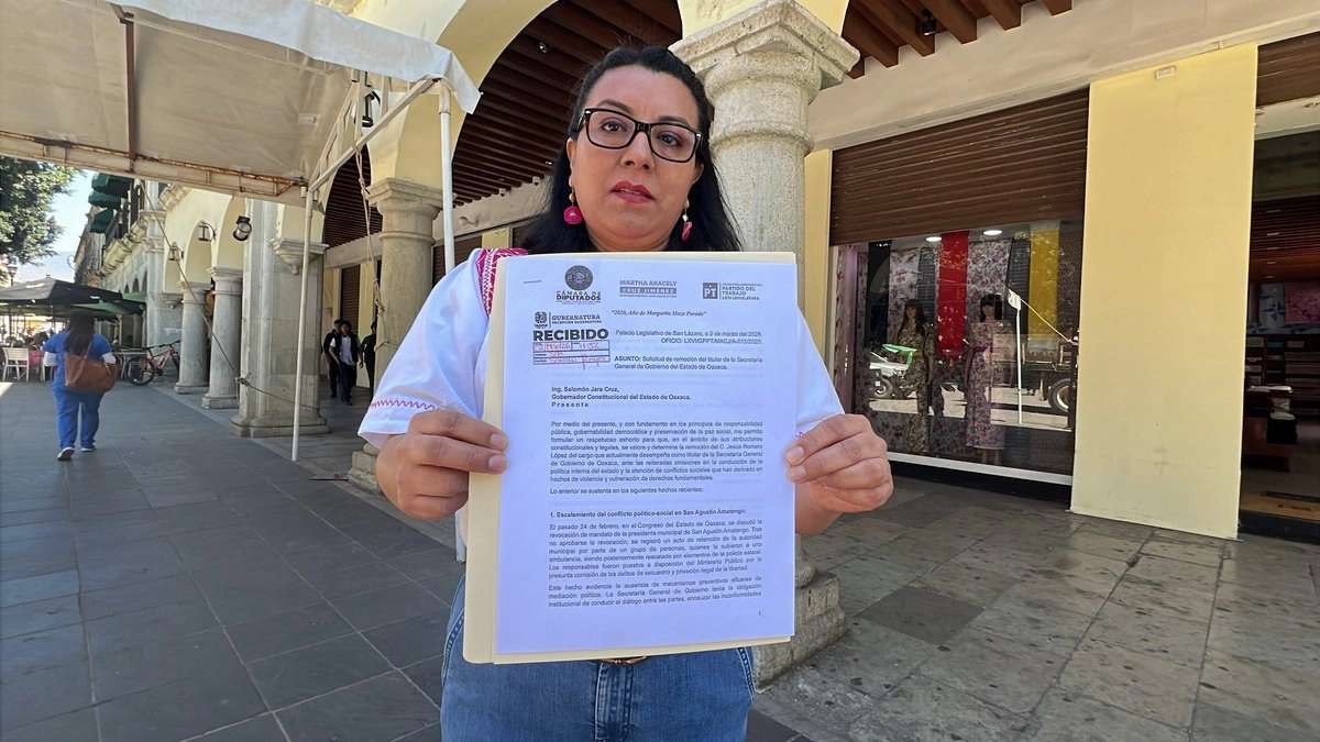 La petista presentó un documento este lunes en las instalaciones del Palacio de Gobierno, donde fue recibido en la oficialía de partes, en este señala, “me permito formular un respetuoso exhorto para que, en el ámbito de sus atribuciones constitucionales y legales, se valore y determine la remoción del C. Jesús Romero López del cargo que actualmente desempeña como titular de la Secretaría de Gobierno de Oaxaca”.
